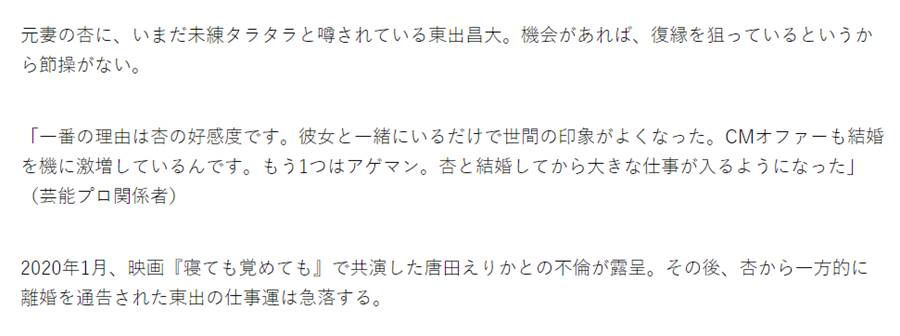 東出昌大、元妻・杏との復縁希望?謎すぎる自信で「俺の。だ」と公言か