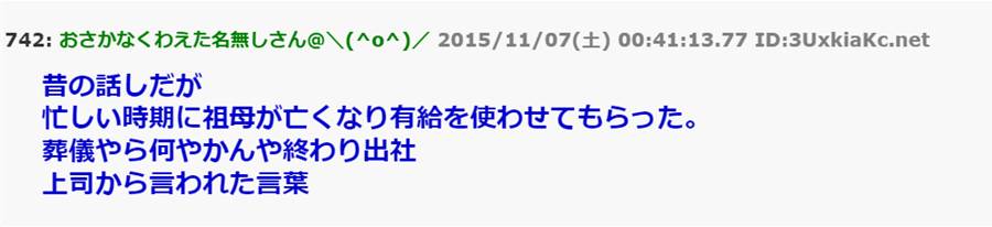 祖母が他界したので有休をとった。上司『ババアの葬式ぐらいで有給使うとか仕事舐めてるの?』私「えっ」 → 頭に来たので、後日全体朝礼の場で・・・
