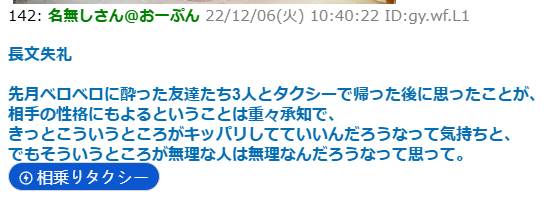 タクシーに相乗りした友人が、1円も払おうとしない。俺「払う気ないの?」友人「タクシーに乗りたいと言い出した奴が払うべきだぞ」→結果…