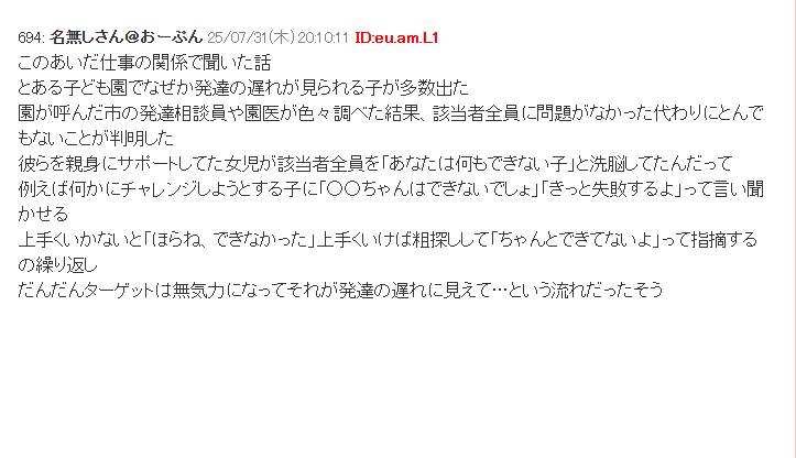 とある子ども園でなぜか発達の遅れが見られる子が多数出た。園が呼んだ市の発達相談員や園医が色々調べた結果…