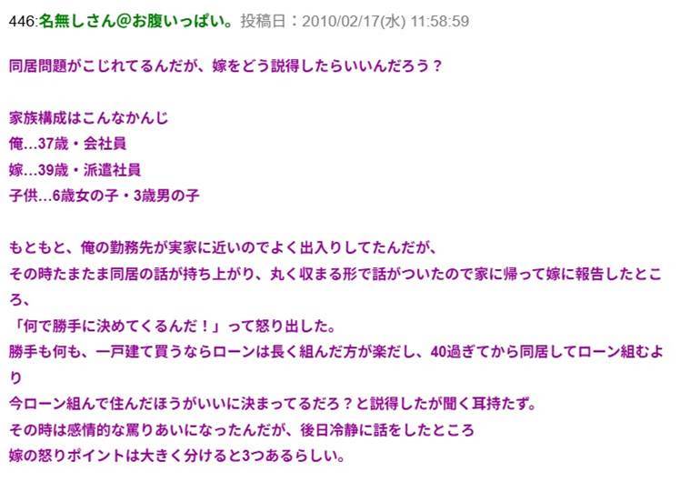 俺「実家で同居を打診されたからOKしてきたぞー^^」嫁「は!?なんで勝手に決めてくるの!?」→同居のメリットを説明して説得したが聞く耳を持たない。どう言えばいいのかな?