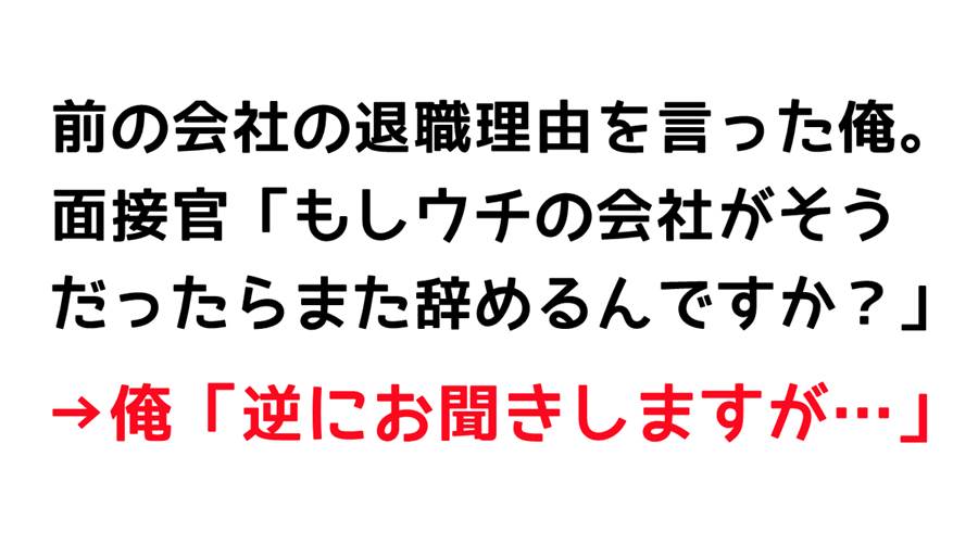 【武勇伝】前の会社の退職理由を言った俺。面接官「もしウチの会社がそうだったらまた辞めるんですか?」→俺「逆にお聞きしますが…」
