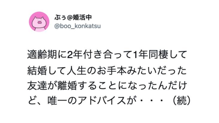 とある離婚経験者の友人からのアドバイスが沁みると話題に。