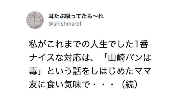 「人生でした1番ナイスな対応」「山崎パンは毒」という話をしはじめたママ友に・・・