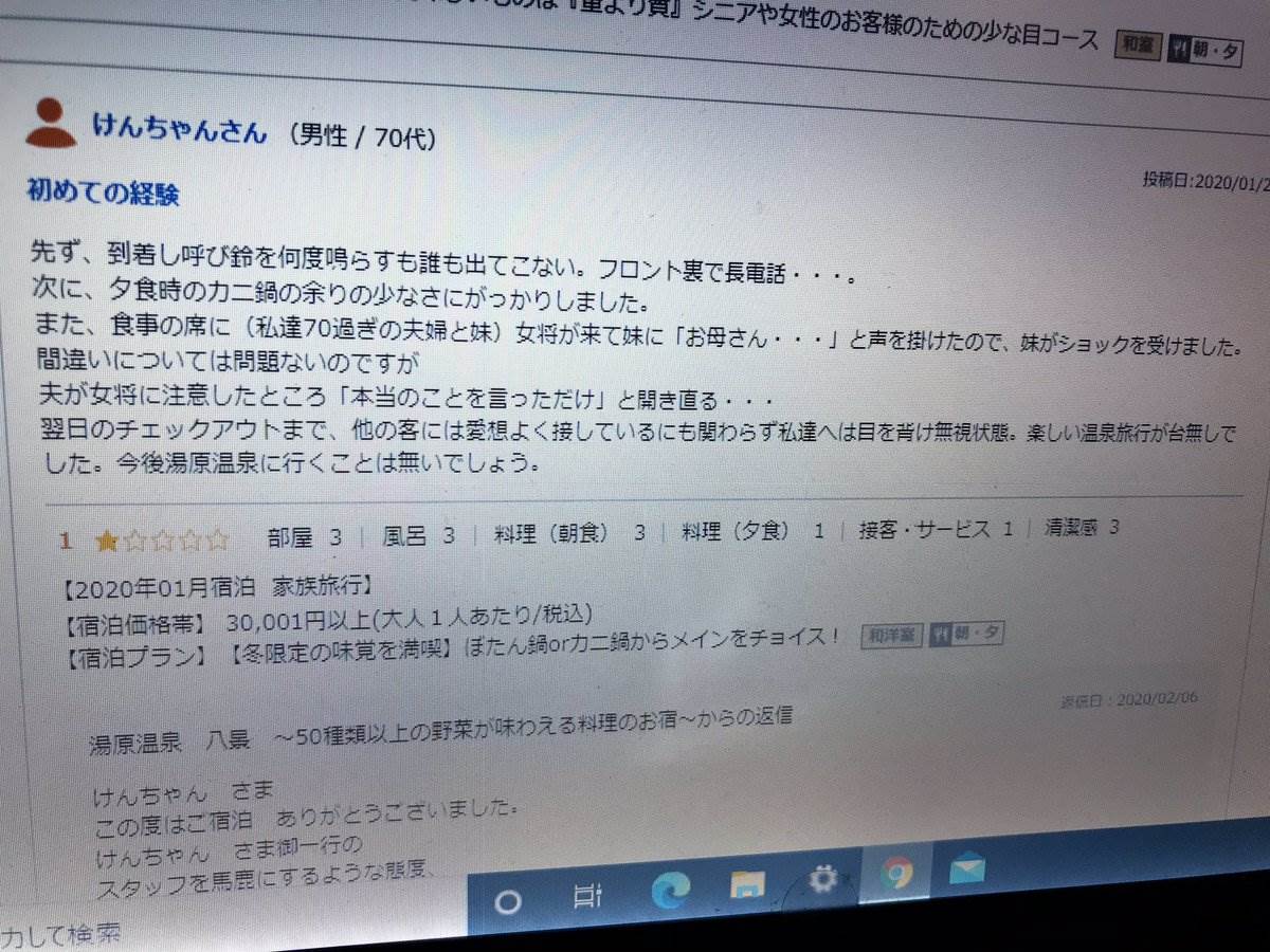 旅館についた辛辣なレビューを旅館側が一蹴「働く者をバカにするような方は来て頂かなくて結構!!