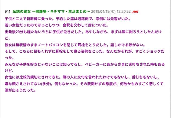 子連れで新幹線に乗ると隣席が若い女性だったのでホッとしつつ着席。出発後20分も経たない内に子が泣き出すと女性は無表情のままPCを閉じ耳栓をして寝る姿勢。凄くショック…