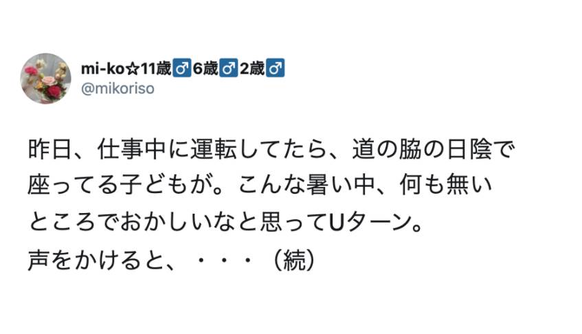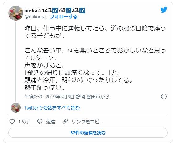 運転中、道路脇に熱中症でうずくまる中学生を発見。親に連絡しようとしたら・・・