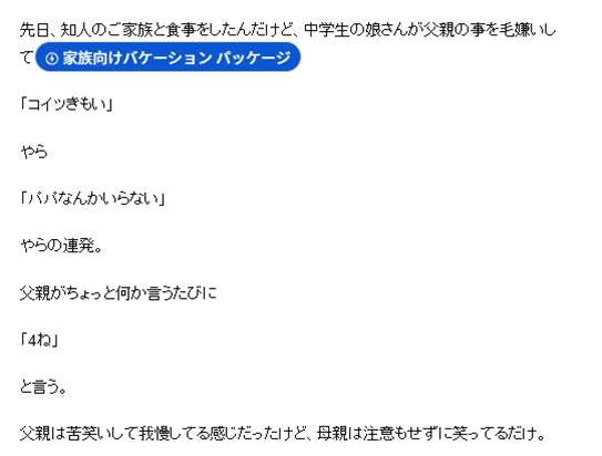 父親に向かって「キモい」「4ね」と暴言をあびせる娘と、それを笑って見てる母親。ずっと耐えてきた末、父親がとった行動に母娘パニック!!